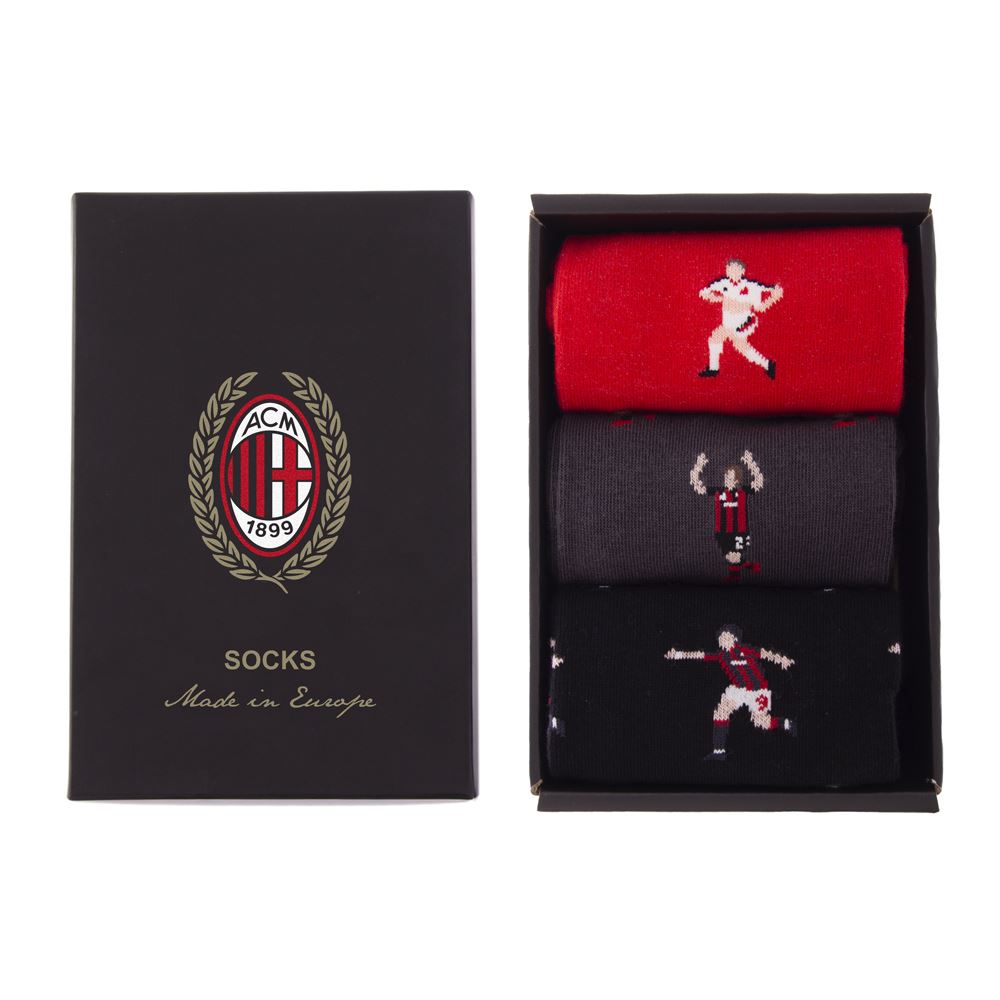 AC Milan casual socks box set from the COPA Football brand. The AC Milan x COPA Football sock box contains three different casual socks, all with a recognizable design of different moments of cheering AC Milan players. The players in the casual socks are Shevchenko, Kaka and Inzaghi. The prints on the casual socks are inspired by some recognizable moments from the history of these players in the AC Milan football shirt. The COPA socks are produced in Italy and are made of 85% cotton, 12% nylon and 3% lycra. The soft cotton provides ultimate comfort.