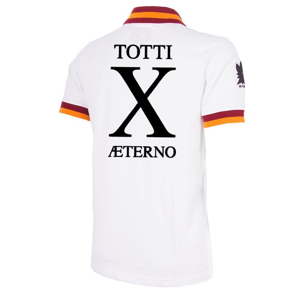 Cool AS Roma retro football shirt from COPA from the official AS Roma collection. This shirt has the Totti X Aeterno print on the back.