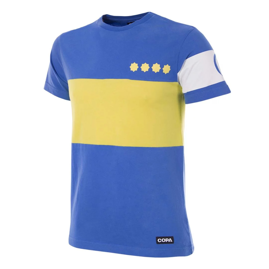 Great captain's shirt from Boca Juniors from the COPA collection. Classic Boca Juniors design t-shirt from COPA, of course based on the Club Atlético Boca Juniors football shirt. On the back you will find the legendary number 10 of Diego Maradona. This captain shirt is completed by an image of the captain's armband around the left arm. The COPA shirts have a regular fit. 100% cotton.