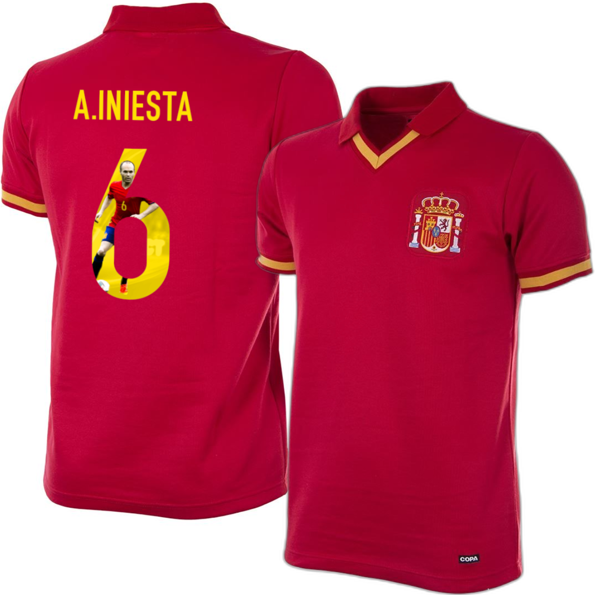 COPA Football - Spain Retro Football Shirt 1988 + A. Iniesta 6 (Photo Style)
