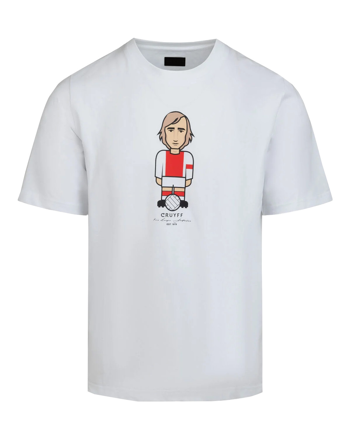 Cruyff Avatar Amsterdam t-shirt in white for adults. This Cruyff t-shirt features a graphic print of Johan Cruijff in Ajax's kit on the front. Johan played for the Amsterdam football club in two different periods and achieved many great successes. The Cruyff Avatar t-shirt is also completely white and has a round neck. Wonderfully stylish Cruyff t-shirt for the true Ajax and Cruijff fan! The t-shirt has a regular fit. Material: 95% cotton - 5% elastane.