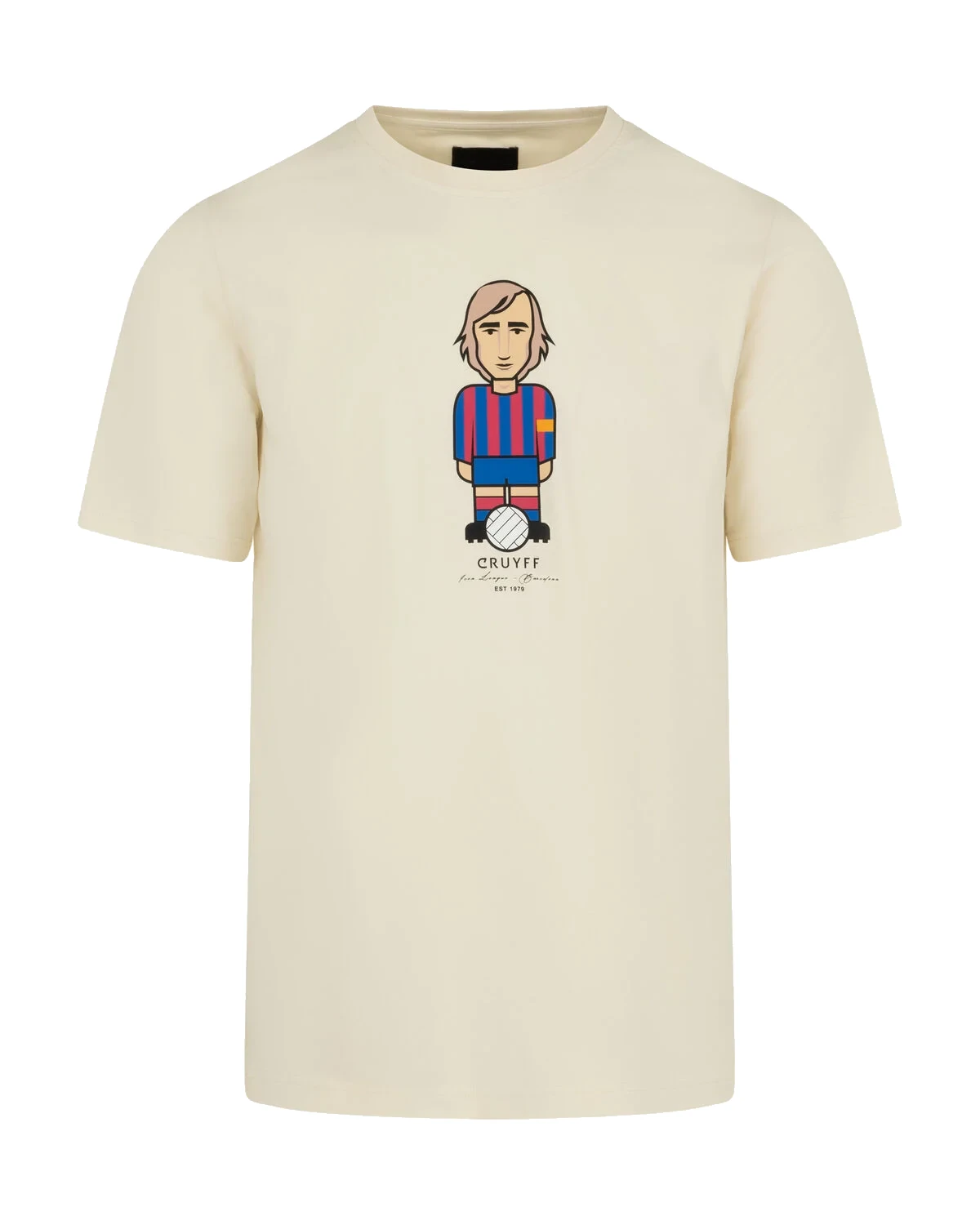 Cruyff Avatar Barcelona t-shirt in white for adults. This Cruyff t-shirt features a graphic print of Johan Cruijff in the Barcelona outfit on the front. After his first period in Amsterdam, Johan played for the Catalan football club from Barcelona. With FC Barcelona, Johan achieved great success and managed to win the Primera Divison and the Copa del Rey. The Cruyff Avatar t-shirt is also completely in a light brown color and has a round neck. Wonderfully stylish t-shirt from Cruyff for the real fan of Barca and Cruijff! The t-shirt has a normal fit. Material: 95% cotton - 5% elastane.