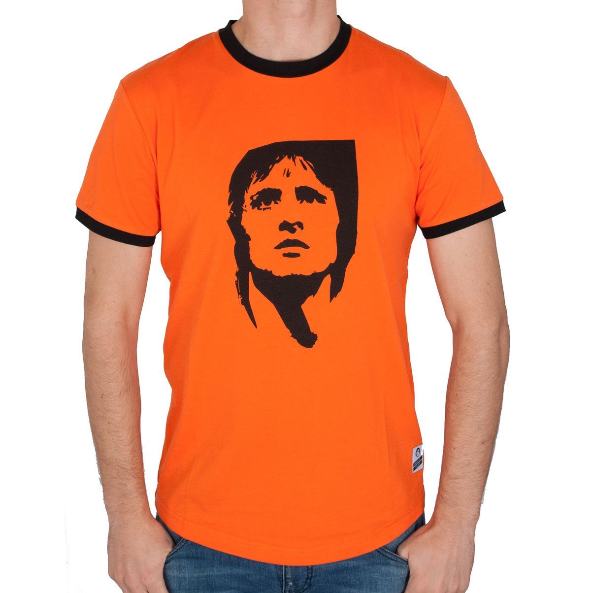 Cool orange Cruyff t-shirt for men. The t-shirt is completely orange with some black details. Both the round neck and the trims are in black. In addition, the Cruyff t-shirt is characterized by a print of Johan Cruijff's face in black on the middle of the t-shirt. A must have for every Cruijff fan! The Cruyff t-shirt has a normal fit. Material: 100% cotton.