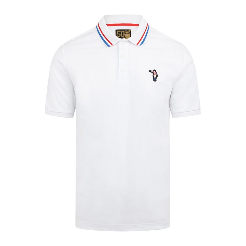 Cruyff Croatia Dos Rayas polo shirt for men. The Cruyff polo is predominantly white and the polo collar contains 2 stripes in red and blue. The left chest contains an embroidery of the silhouette of Johan in the Croatia kit. The stylish Cruyff polo has a normal fit. Ideal for fans of Croatia and Johan Cruijff! Material: 100% cotton.