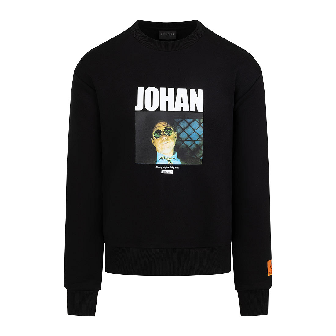 The Cruyff Crewneck Sweater Johan is a stylish must-have for every football fan. This black men's sweater features a timeless design with a comfortable crew neck and a regular fit, making it perfect for everyday wear.