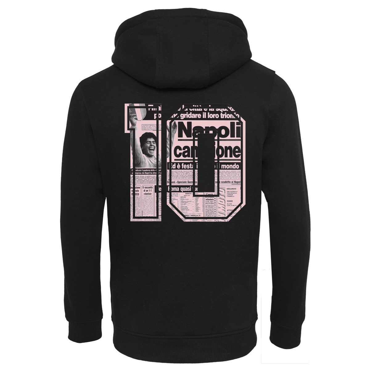 Cool FC Eleven hoodie as a tribute to Maradona. On the left chest is a print of the Argentinian star in the football shirt of SSC Napoli. The back of this hoodie features his iconic number 10 jersey. This jersey number features a special photo print of a newspaper article after the Napoli Championship in 1987. Maradona led Napoli to the first championship in the club's history. Of course, the FC Eleven logo is also on the back of the hoodie.