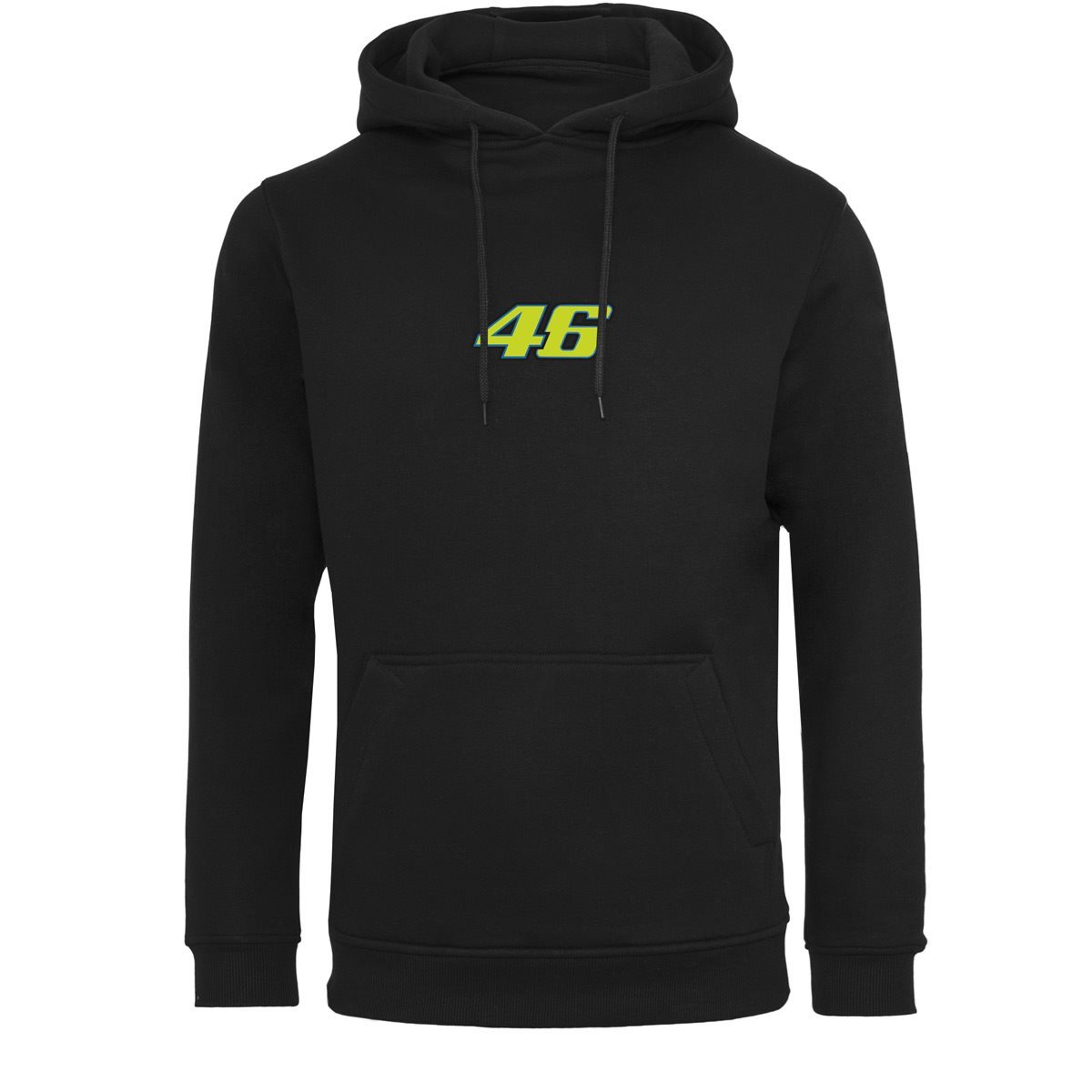Cool FC Eleven hoodie as an ode to Valentino Rossi and "his" number 46. Number 46 on the center of the chest. This number is also printed in large on the back of the sweater. As reigning champion, Rossi was allowed to wear number 1, but he stayed with number 46. This as a tribute to his father who achieved success in the years 1979-1980 in the 250 and 500cc class with number 46.