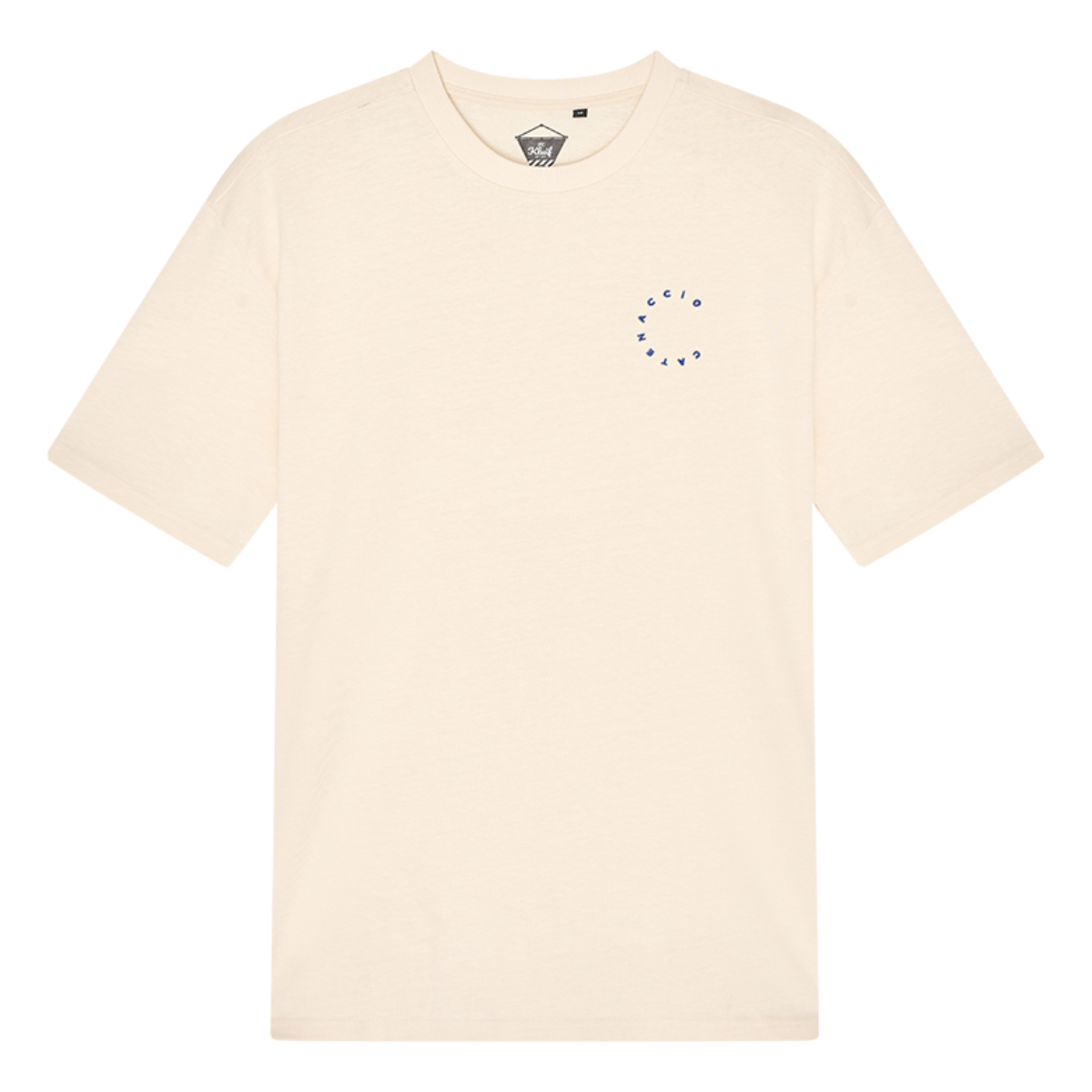 A comfortable, oversized T-shirt with subtle references to the land of pizza, the Romans and the Catenaccio football system! A recognizable defensive football tactic, praised by supporters and hated by opponents. This heavy cotton T-shirt is off-white in color and has an oversized fit. On the left chest you will find the Italian word Catenaccio in the shape of a C, of course in 'Azzurri' blue.