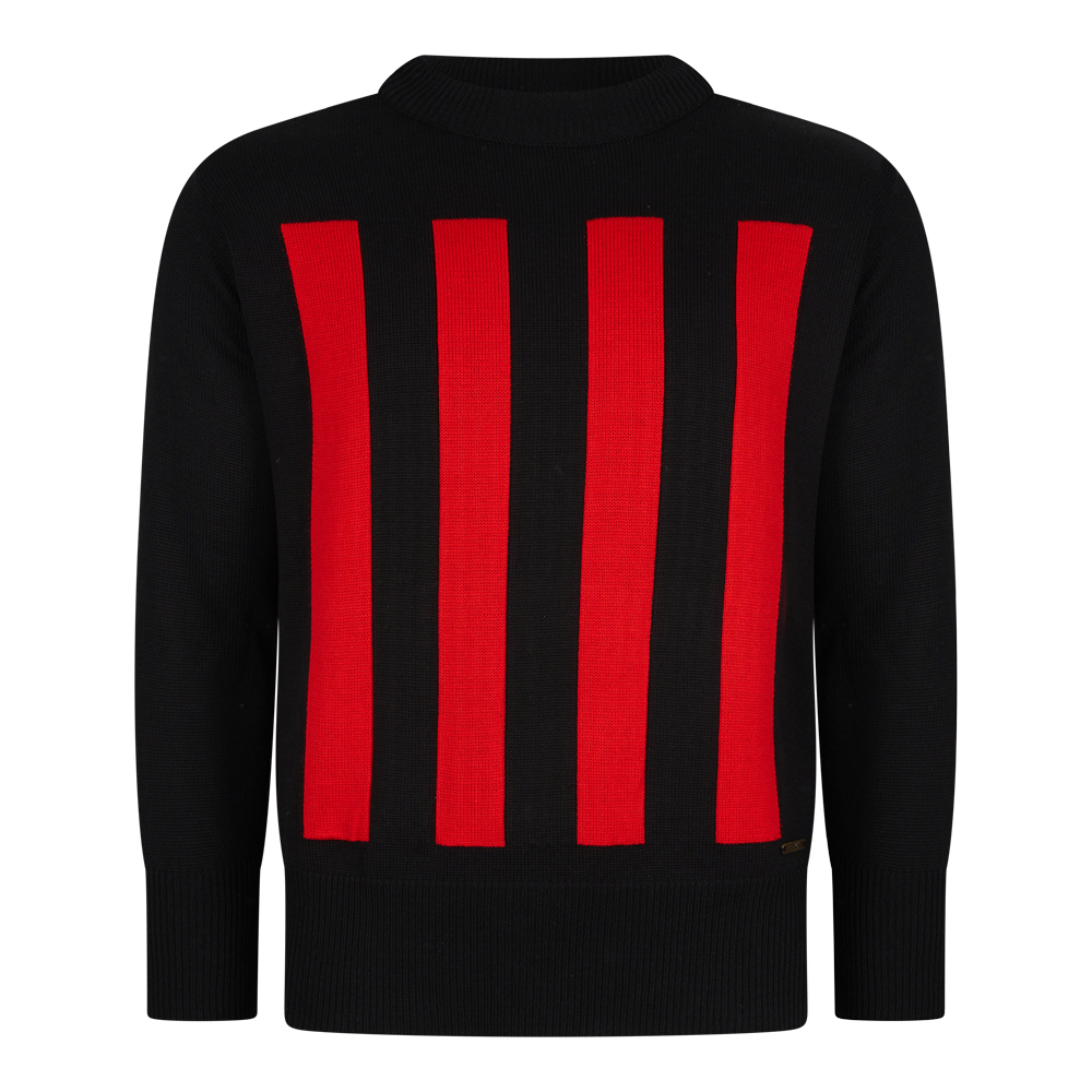 The I Rossoneri sweater is made of 50% cotton and 50% acrylic. This airy summer knitted sweater is also 100% made in Holland. The jersey has a subtle metal FC Kluif label at the bottom of the collar on the right front.