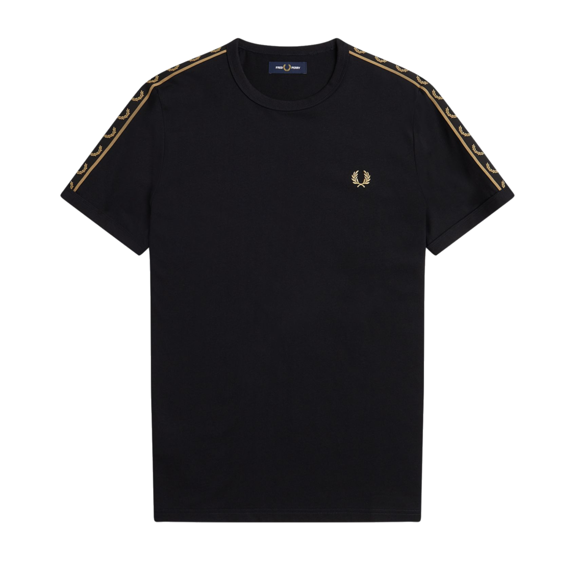 Sporty t-shirt from Fred Perry in black with gold for men. This t-shirt has a round neck and is characterized by the gold taping over both shoulders and sleeves. This tape features Fred Perry's famous laurel wreath. This Fred Perry logo can also be found in gold on the left chest. This logo and the stripe on the sleeves give the Fred Perry t-shirt a real vintage sportswear look like the 1990s. A lovely t-shirt from the Sports Authentic collection of the English brand. This Fred Perry Contrast Tape Ringer t-shirt has a regular fit.