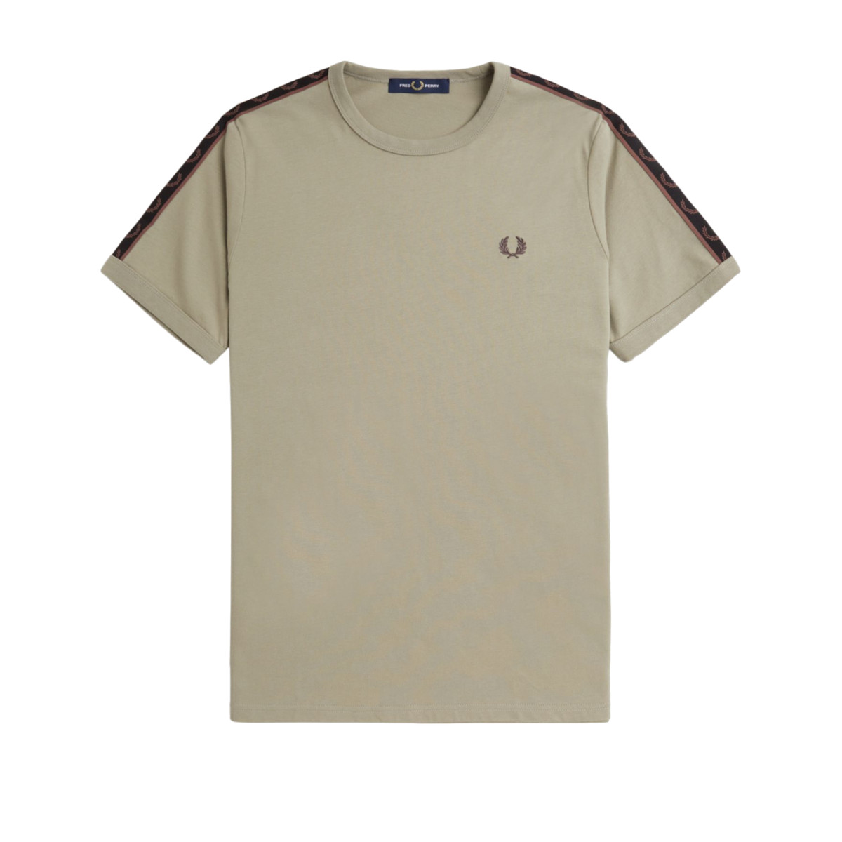 Contrast Tape Ringer t-shirt from Fred Perry in the color 'Warm Grey' for men. The gray Fred Perry t-shirt has a round neck and is characterized by the black and brown taping over both shoulders and sleeves. This tape features Fred Perry's famous laurel wreath. This Fred Perry logo can also be found in brown on the left chest. This logo and the tape on the sleeves give the Fred Perry t-shirt a real vintage sportswear look. A lovely t-shirt from the Sports Authentic collection of the English brand. This Fred Perry Contrast Tape Ringer t-shirt has a regular fit.