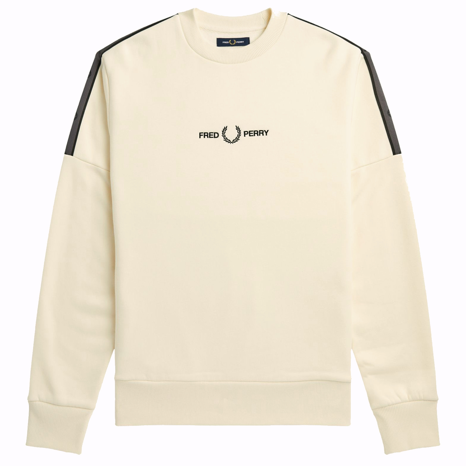 Sporty sweater from Fred Perry in ecru / plain white. This sweater is made from a super soft blend of cotton and polyester. This fleece fabric feels soft and always keeps you warm. The neck is a ribbed crew neck and the bottom of the sleeves also have a ribbed design. Half the sleeves contain a contrasting taping with the Fred Perry logo. The Fred Perry logo is also embroidered on the center of the chest and is of course characterized by the laurel wreath. Perfect sweater for the real Fred Perry enthusiast! Body: 66% Polyester, 34% Cotton.