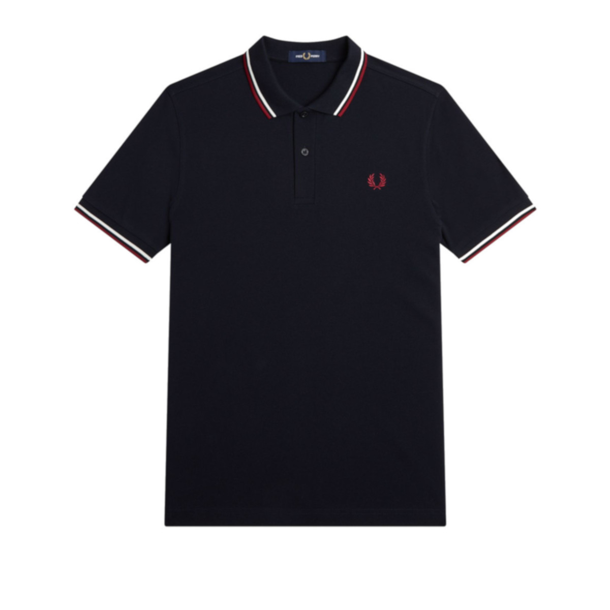 Fred Perry polo shirt in navy blue for men. The polo is the well-known Twin Tipped model. The two stripes at the piping and collar are in white (Snow White) and red (Burnt Red). This color combination provides a classic look. The Fred Perry polo shirt from the twin tipped collection has a sublime fit that does not disappear even after many washes. The fashionable Fred Perry polos have the retro tennis design that every sports fashion fan loves. Naturally, the cotton used is of very high quality. The Fred Perry polo fits perfectly over your jeans, chino pants or shorts during the warm days of the year. The Fred Perry polos are available in various popular colors. The Fred Perry Twin Tipped polo shirts collection fits comfortably and normally on the body. 100% cotton pique.