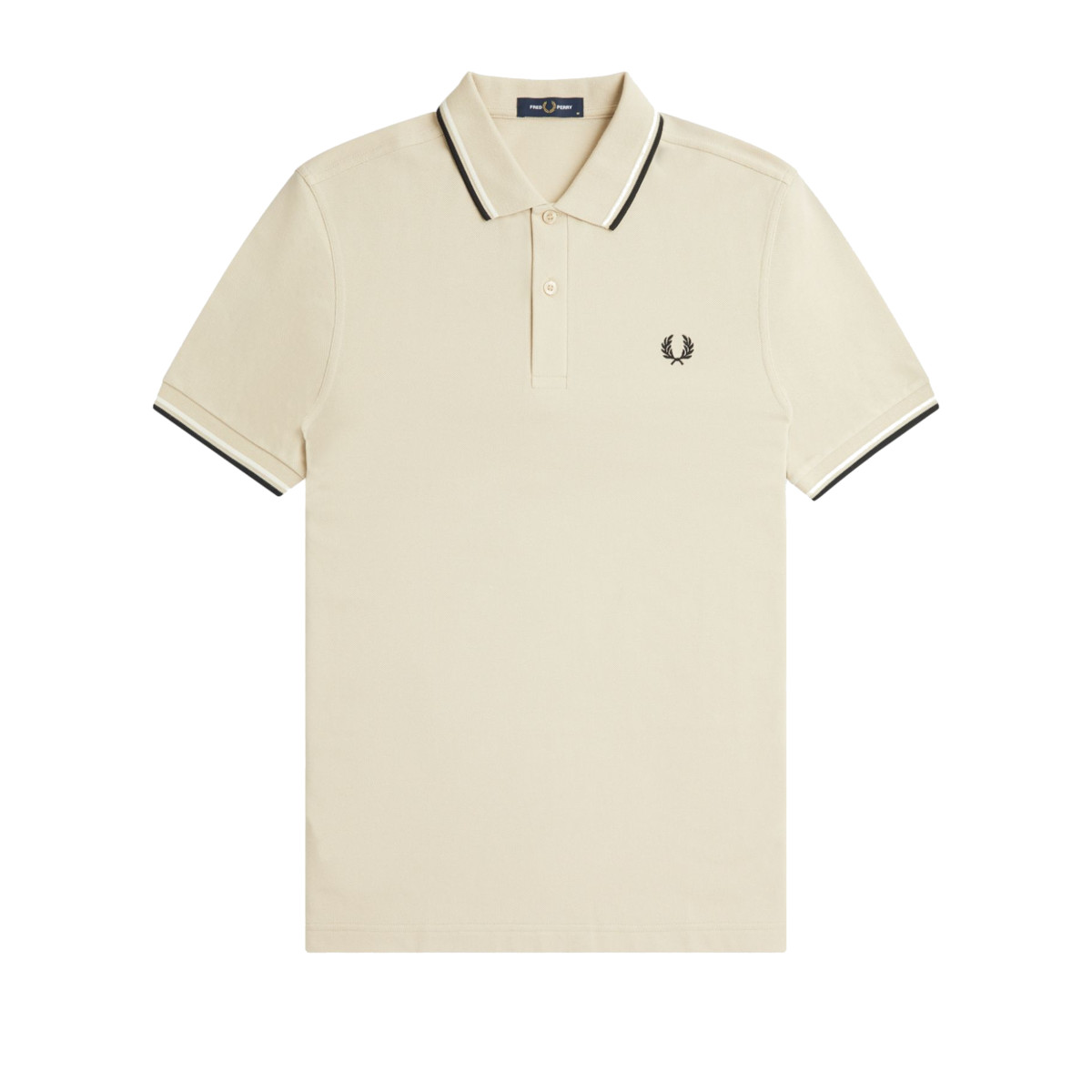 Fred Perry polo shirt in beige (oatmeal) for men. The classic polo comes from Fred Perry's twin tipped collection and is characterized by the two stripes on the collar and piping. The two stripes on the polo collar and the piping are in the colors ecru and black. In addition, the polo has two buttons at the neck. Fred Perry's famous laurel wreath on the left chest. The Fred Perry (M3600) Twin Tipped polo shirts have a contemporary fit. The fashionable Fred Perry polos have the retro tennis design that every sports fashion fan loves. Naturally, the cotton used is of very high quality. The Fred Perry polo fits perfectly over your jeans, chino pants or shorts during the warm days of the year.