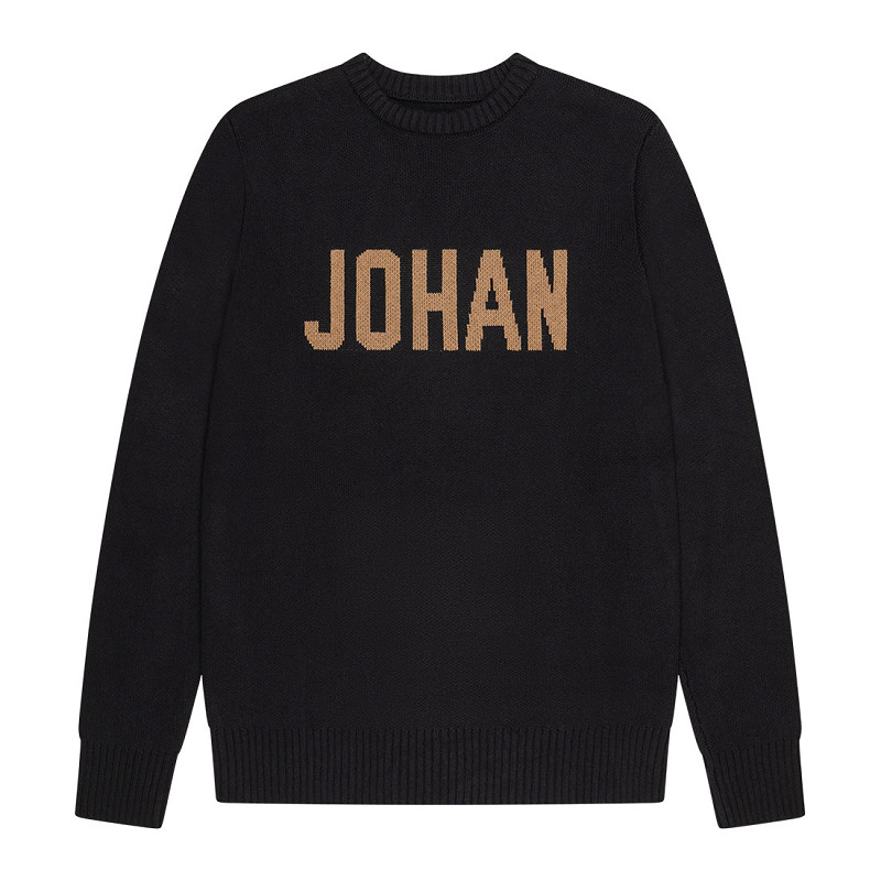 The Johan Cruyff ‘Johan’ Knit Crewneck sweater in black is a timeless and versatile addition to any wardrobe. This men’s sweater features a comfortable regular fit and a bold ‘Johan’ print on the chest, creating a modern and recognizable look.