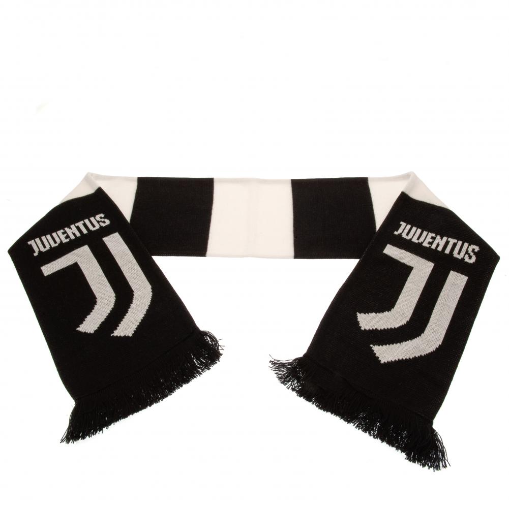 Jacquard knit Juventus retro bar scarf. The scarf is in the club colors of Juventus and is completely in white and black. The Juventus club logo is applied to the sides and the scarf is white with black stripes in the middle. There are white fringes on the sides. Ideal shawl for the colder period and ideal for the true Juventus FC fan. The scarf is made of high-quality acrylic yarns.