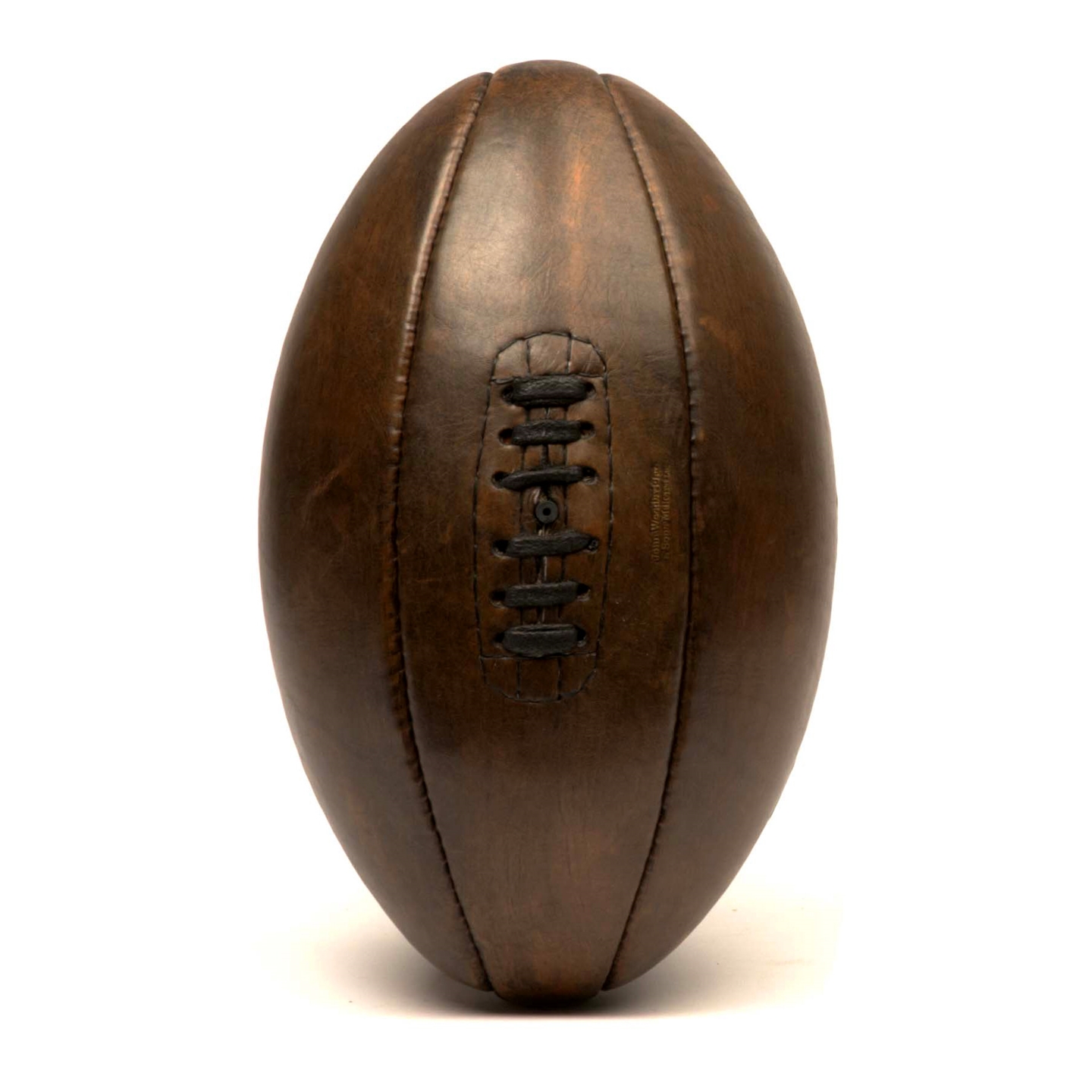 Retro leather rugby ball based on the rugby balls from the 1930s. Cool retro rugby ball for the real enthusiast! Original handmade leather rugby ball. Produced with the same attention to detail and craftsmanship as back then. The rugby ball from the 1930s has 6 panels. This vintage leather rugby ball is inspired by a model with which rugby matches were played during the 1924 Olympic Games in Paris. This retro-look rugby ball, with 6 high-quality leather panels, is handmade according to the classic English method in the workshop of John Woodbridge.