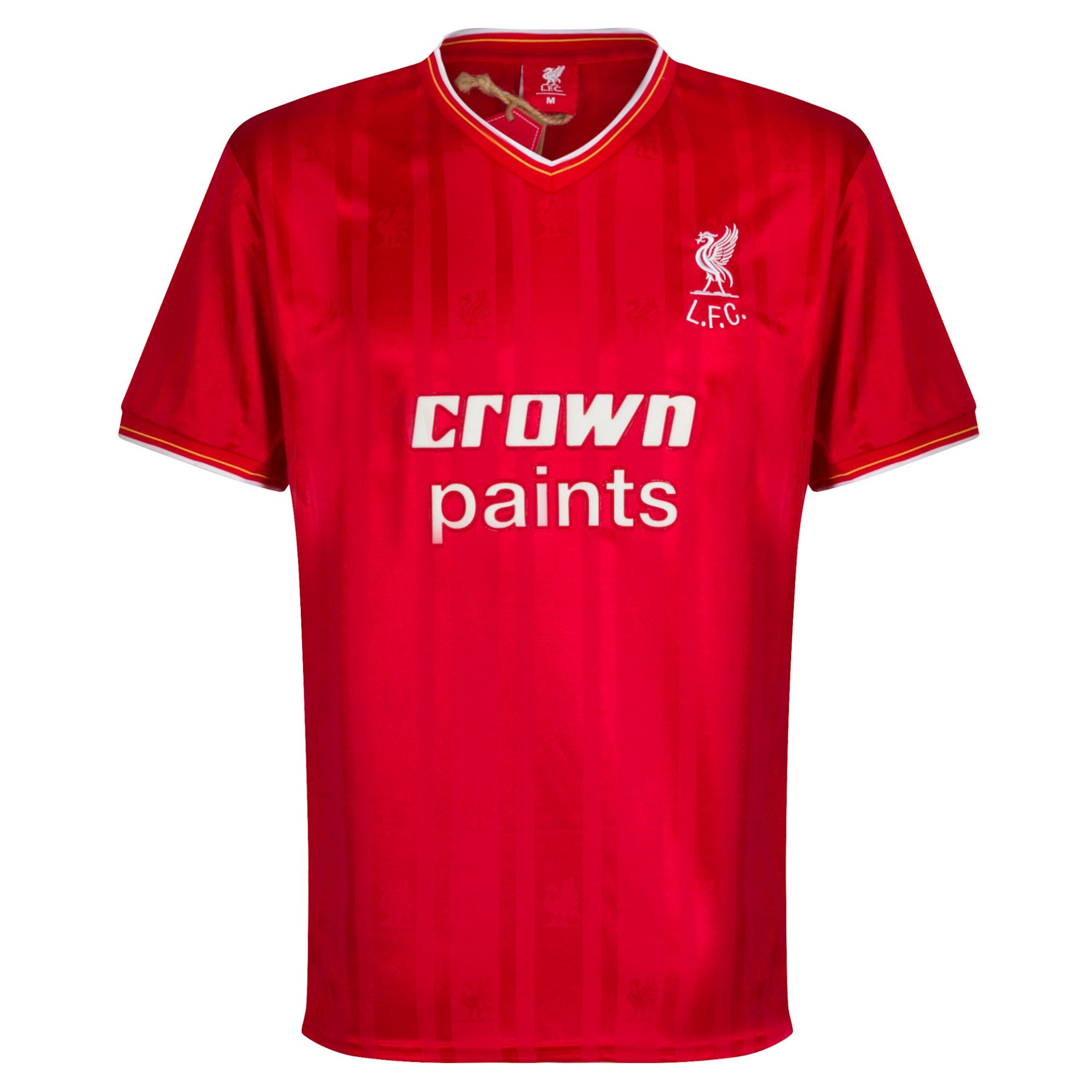 This is the official Liverpool retro football shirt 1986. The retro football shirt is based on the home shirt of the English club which was worn in the 1985-1986 season. The red Liverpool retro football shirt contains a white line in the piping and on the V-neck. Main sponsor CROWN PAINTS decorates the football shirt in the center of the chest and the Liverpool FC emblem in white on the left chest. Material: 100% polyester.