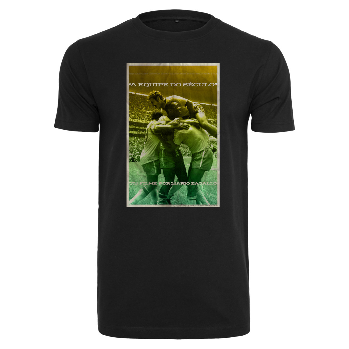 Cool football t-shirt with photo print of the 'Team of the Century'. During the 1970 World Cup, the Brazilian football team won the World Cup. During the entire tournament, all matches were won with very attacking play. With players like Pelé, Gérson, Jairzinho and Rivelino, Italy was defeated 4-1 in the final. The t-shirt is completely black and has a round neck. The t-shirt has a normal fit. Material: 100% cotton.
