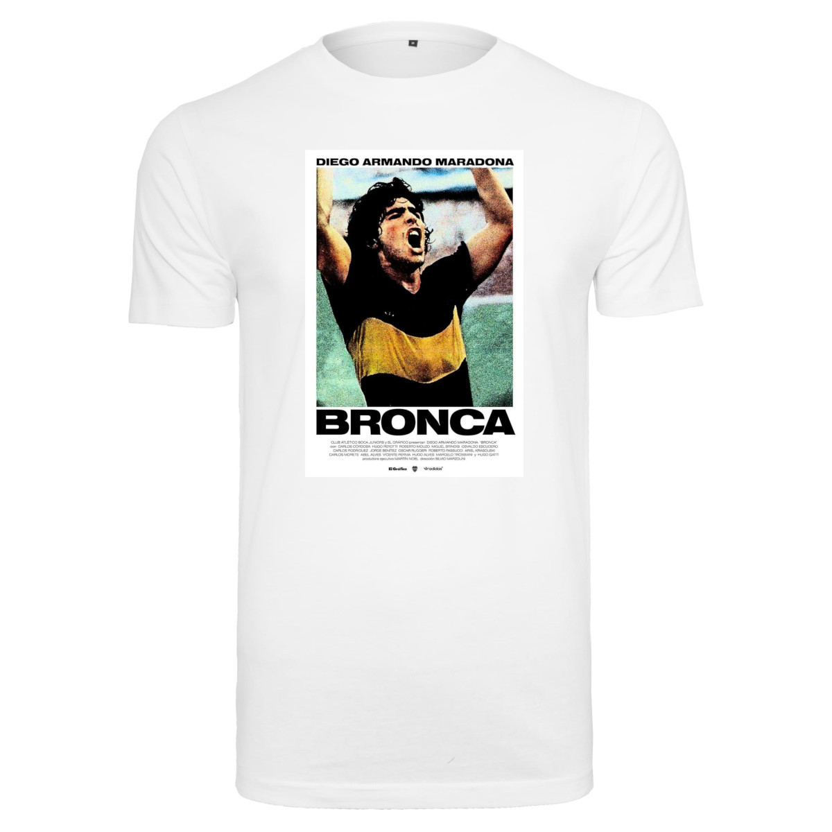 Cool football t-shirt with photo print of a cheering Diego Maradona in his early years at Boca Juniors. "Bronca" is slang that comes from the Spanish word Cabron. "Bronca" was Maradona's fuel. In the 1981-1982 season, Diego played 40 matches for Boca and managed to find the net 28 times. The t-shirt is completely white and has a round neck. The t-shirt has a normal fit. Material: 100% cotton.