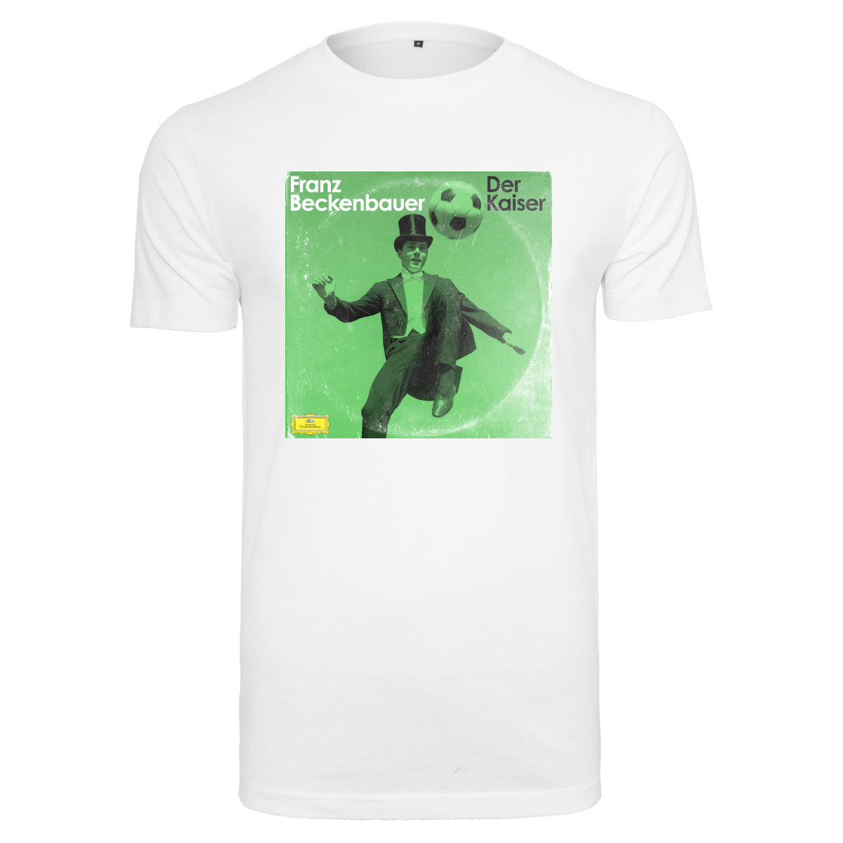 Beautiful football t-shirt from Pennarello with photo print of the German footballer Franz Beckenbauer. This t-shirt features a print of an LP record with an image of Franz Beckenbauer and his nickname ''Der Kaiser''. Beckenbauer made use of his popularity in the sixties by briefly trying a singing career. Beckenbauer was very successful as both a footballer and a trainer. As a player, Der Kaiser won the World Cup in 1974, for example, and as a national coach he managed to win the 1990 World Cup with Germany. At FC Bayern he won the Bundesliga, the DFB-Pokal and the European Cup I several times. The t-shirt is white and has a round neck. The t-shirt has a normal fit. Material: 100% cotton.