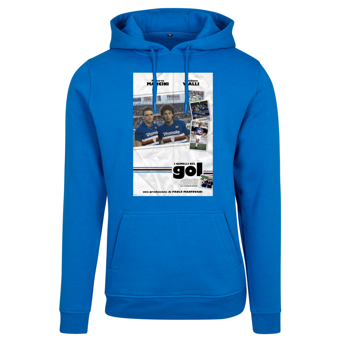 Warm Sampdoria hoodie in blue for adults. This hoodie features a cool print of Roberto Mancini and Gianluca Vialli on the middle of the chest. The two attackers played for Sampdoria in 1988. Mancini and Vialli were the perfect couple and were therefore also called the goal-scoring twins (i gemelli del gol). In 1988/89, Sampdoria won the Coppa Italia and reached the final of the Cup Winners Cup. This hoodie has a regular fit.