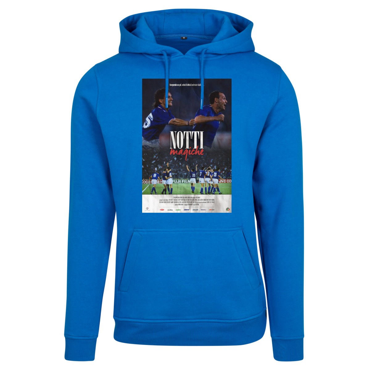 Warm Italy hoodie in blue for adults. This hoodie has a cool print of the Italian national football team from 1990 in the middle of the chest. For the 1990 World Cup, a song was produced with the title Notti Magiche (magical nights). During this World Cup, this song was used in many TV programs in Italy. A documentary was also made about the 1990 World Cup in Italy, this has the title: Italia '90 - notti magiche. This hoodie has a normal fit.
