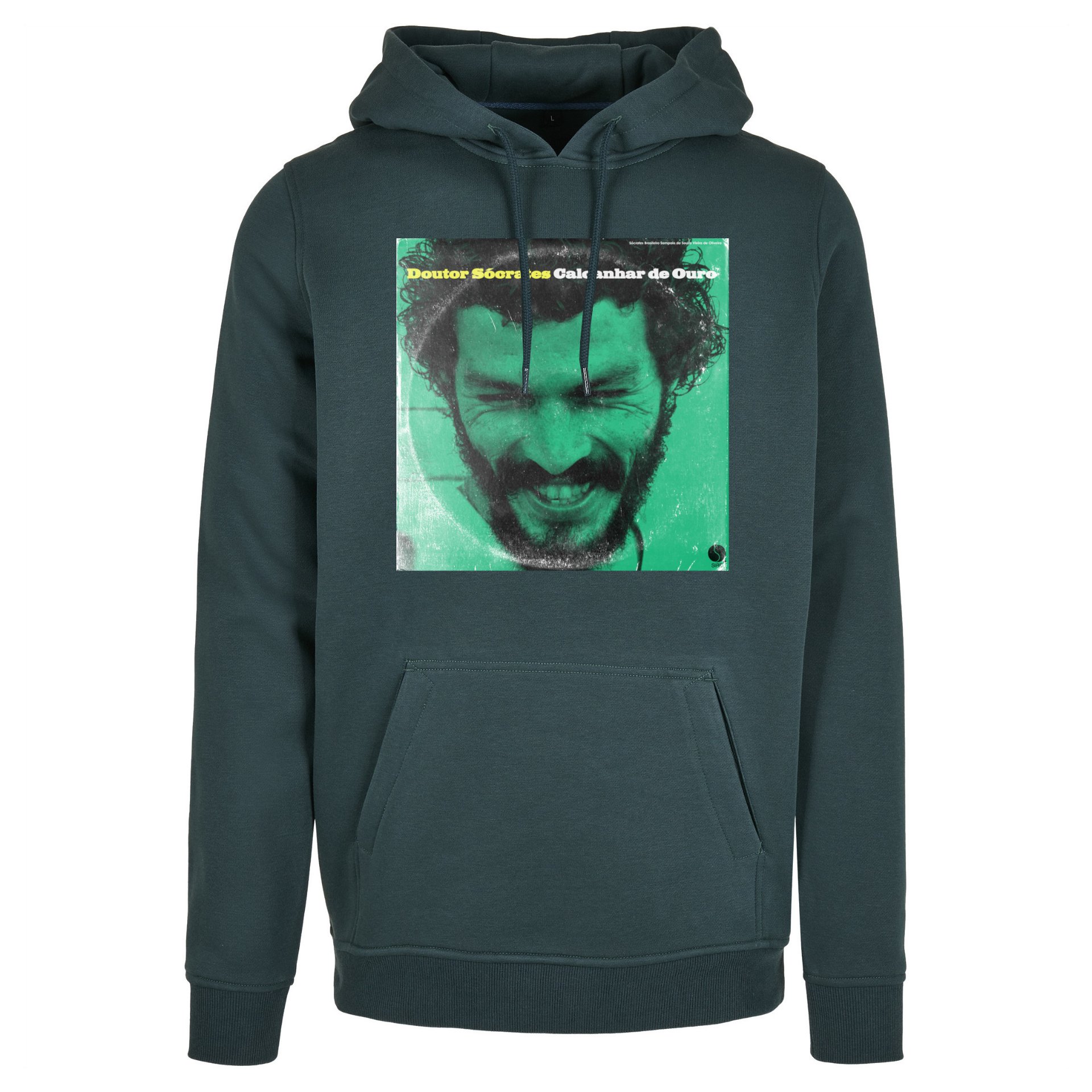 Cool football hoodie in dark green as an ode to the Brazilian star player Socrates. A cool photo print of Socrates is displayed in the middle of the chest. The print is further decorated with the name of the Brazilian ex-superstar and his nickname: "Doutor Socrates Calcanhar de Ouro". Socrates played for Brazil at the 1982 World Cups in Spain and 1986 in Mexico. Socrates also played for football clubs such as Fiorentina, Botafogo and Corinthians.