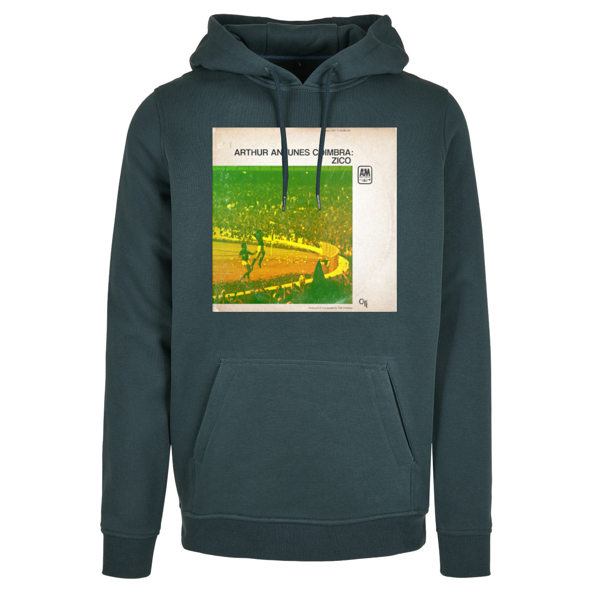 Beautiful football hoodie in dark green as an ode to Brazilian star player Zico. The hoodie contains a print in the shape of an LP with an image of Arthur Antunes Coimbra (Zico) after scoring a goal for the Brazilian national team. Zico played 72 matches for the Brazilian national team and managed to score 52 times. In club football, Zico played for Flamengo, Udinese, Sumitomo Metals and Kashima Antlers. Zico is known as one of the best Brazilian stars of all time, but never managed to win a World Cup. Ideal t-shirt for the real fan of this former star. The hooded sweater has a normal fit.