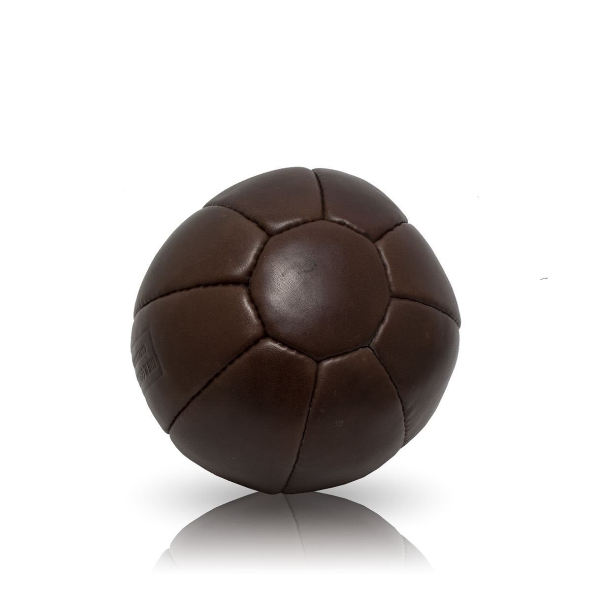 Retro leather medicine ball weighing 2 kg. The medicine ball consists of 8 panels and 2 discs. The vintage ball is handmade from cowhide. The medicine ball can be put on display, but can also be easily used in modern exercises. Cool retro ball for the real enthusiast! Original handmade leather ball. Produced by P. Goldsmith & Sons.