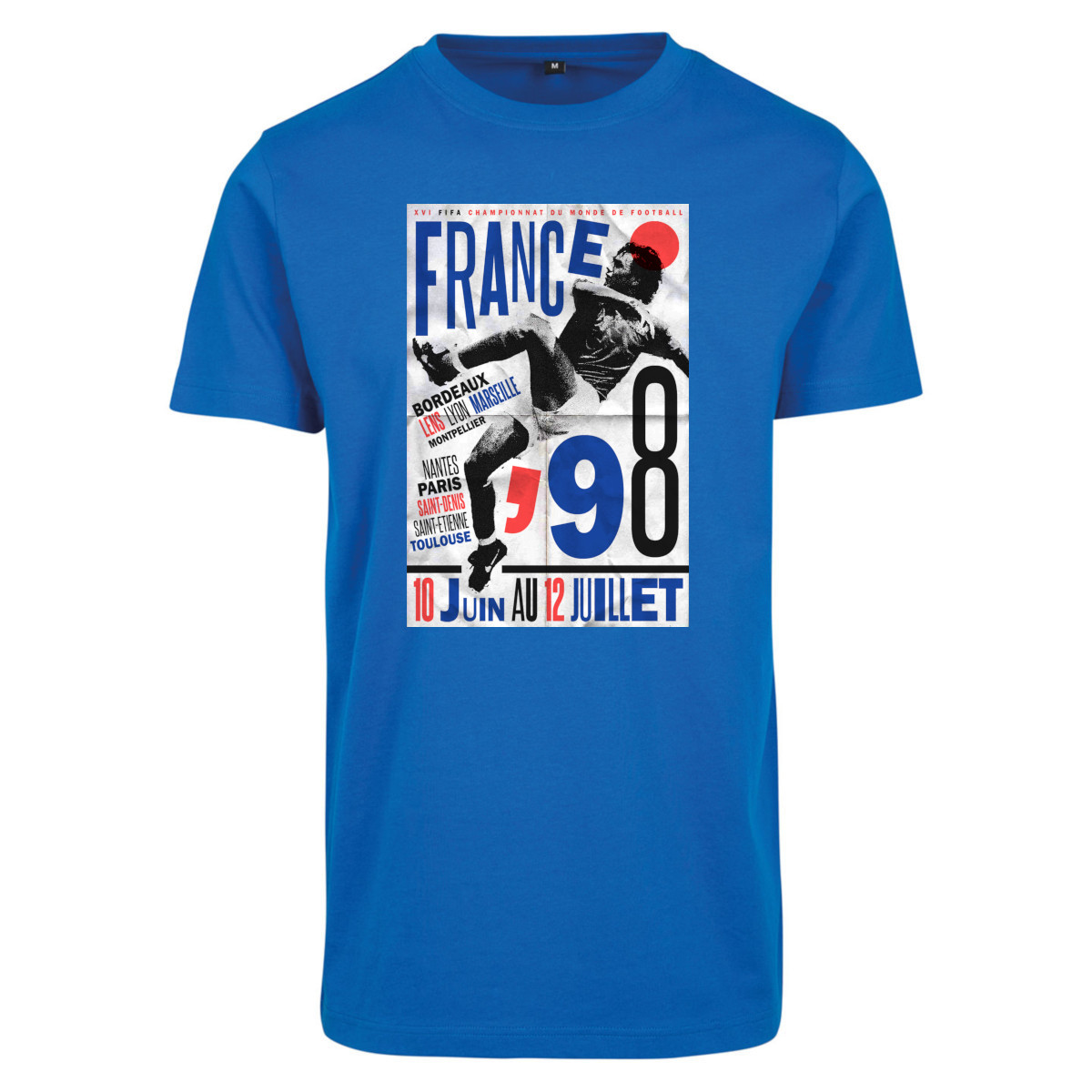 Football t-shirt by Pennarello with photo print that takes you back to the 1998 World Cup. France was the host country in 1998 during the sixteenth World Cup. The tournament started on June 10 and the final was on July 12 and the matches were played in 10 different stadiums in France. The t-shirt has a print with information about the World Cup. The t-shirt is white and has a round neck. The t-shirt has a normal fit. The print was designed by James Campbell Taylor under the project 'From Stadio to Studio'. The design shows a historic moment from the history of football on a film poster. Material: 100% cotton.