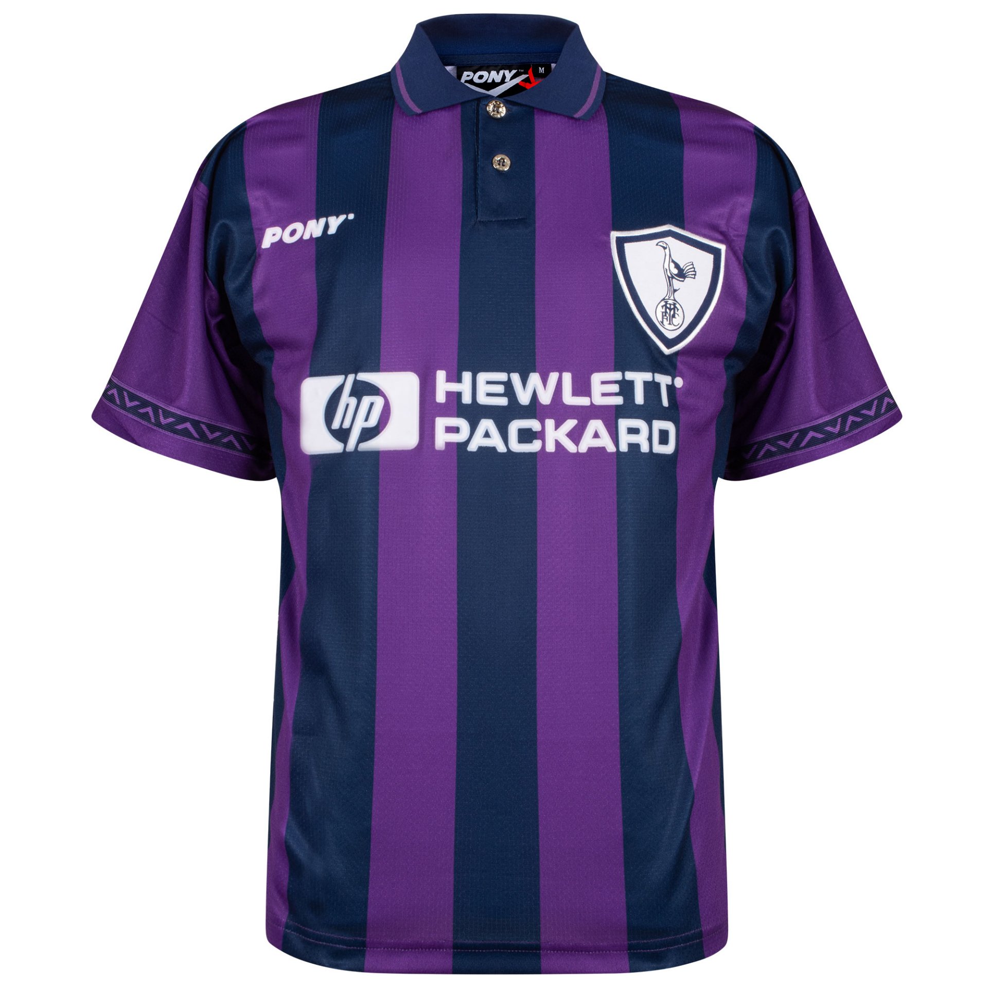 This is the official Pony Tottenham Hotspur retro football shirt 1995/96 for adults. This Tottenham Hotspur retro football shirt is based on the away shirt that was worn in the 1995-1996 season. The Tottenham football shirt is characterized by purple with dark blue vertical stripes. The polo collar is dark blue with a thin purple stripe and the neck has two buttons. The name of the then sponsor Hewlett Packard is in the middle of the chest. The Spurs logo on the left chest and the name of clothing sponsor Pony on the right. This Tottenham Hotspur football shirt was worn in the 1995-1996 season by players such as Teddy Sheringham, Darren Anderton, Sol Campbell, Chris Armstrong and other players. Material: 100% polyester.