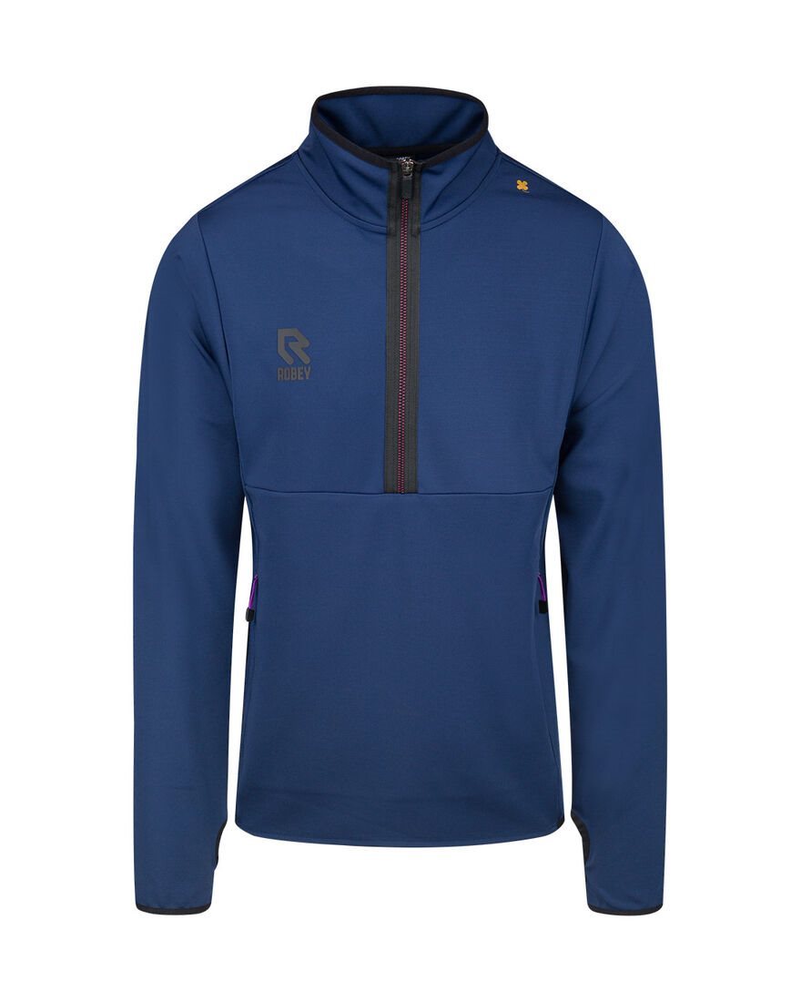 Sporty Off Pitch Scuba Half-Zip top from Robey. The Off Pitch jersey is perfect to wear after training or after a game. The Off Pitch top has a stylish fit and is made of soft and high-quality scuba material. The sweater has a half zipper and the letter R of Robey is applied to the right chest. On the left shoulder a four-leaf clover in gold. Includes zippered pockets. Material: polyester/elastane.