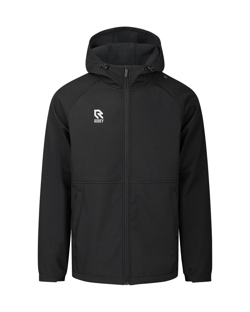 Softshell jacket for adults from the Robey brand. The Softshell hooded jacket is the perfect jacket for both on the way to or from training and/or competition. The softshell jacket from Robey is equipped with windproof, breathable and water-repellent qualities. In addition, the Robey softshell jacket has two zipped pockets. This jacket has a hood with adjustable cord. The Robey logo on the right chest and a four-leaf clover on the left shoulder. A must-have jacket for every athlete!
