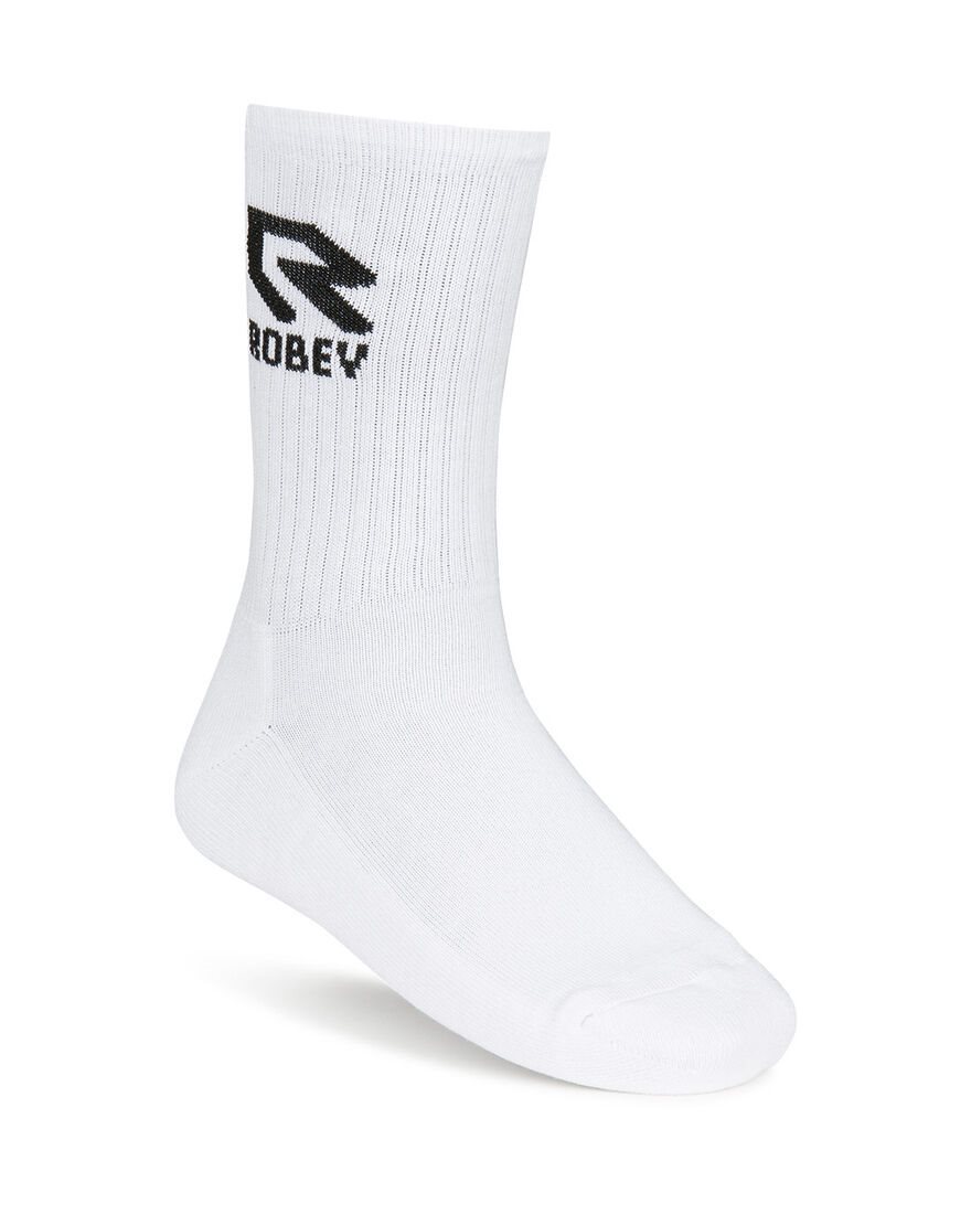 Regular Sport socks in white from the brand Robey. At the top the Robey logo in white. The sports socks are made of soft and breathable cotton so that your feet stay comfortable during sports, hiking and everything in between. Three pairs of sporty Robey socks for a great price. The socks are available in sizes Junior (35-40) and Senior (41-46). 100% cotton.