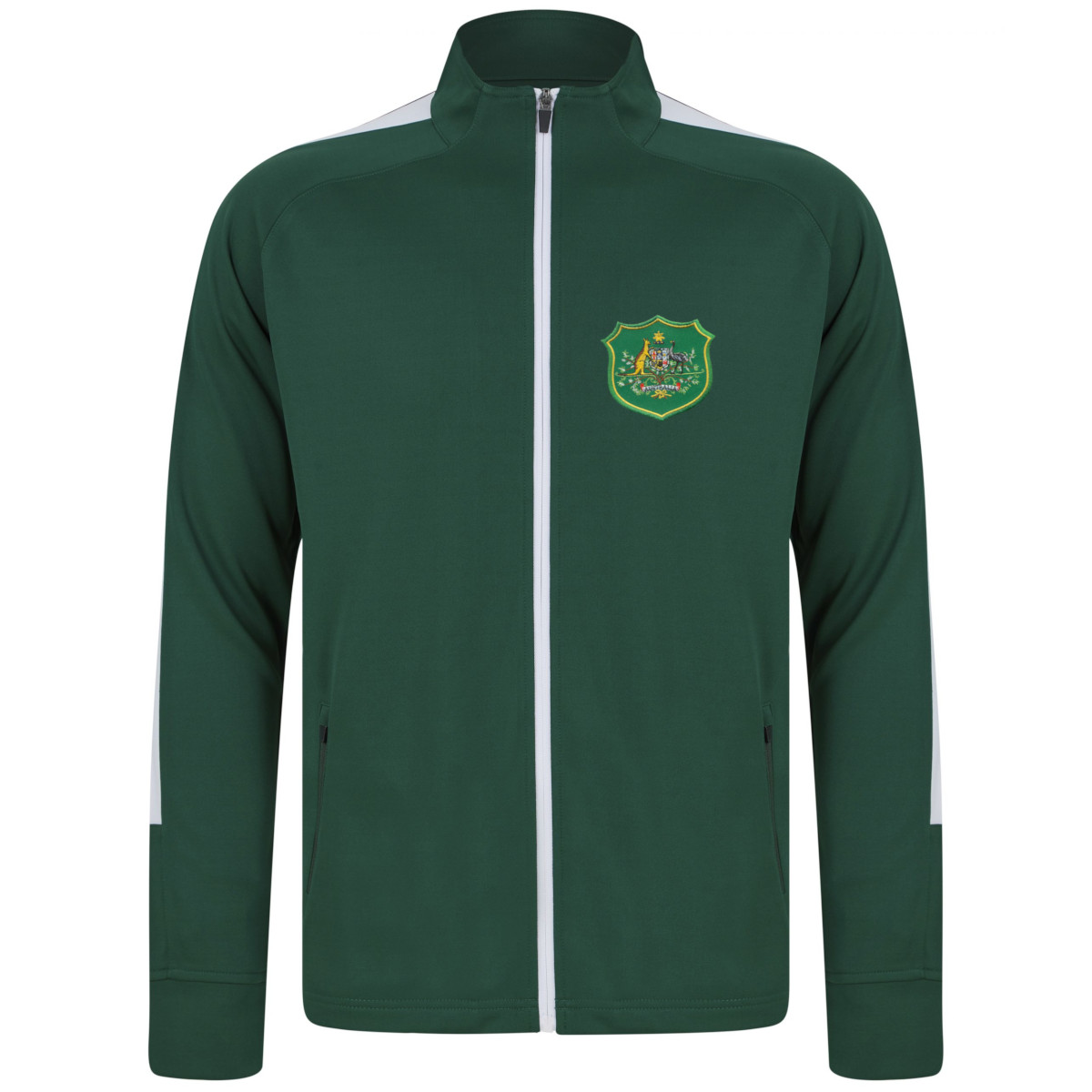 Sporty South Africa training jacket from Rugby Vintage in green and white. The training jacket contains a vintage South Africa badge on the left chest. This badge features a springbok. The sleeves of the training jacket are characterized by white taping down to the forearms. The training jacket also has a zipper and a small stand-up collar. The side pockets also have a zipper. Ideal for safely storing your belongings. The South Africa Springboks training jacket from Rugby Vintage has a normal fit. Material: 100% polyester.