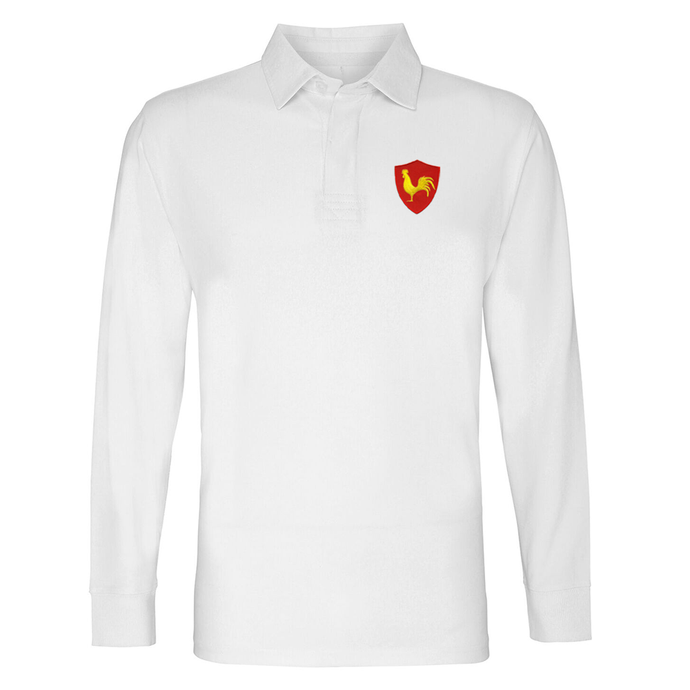 The real classic 1960s white long-sleeved rugby jersey worn by the French selection composed among others of Christian Carrère the captain, Benoît Dauga, Michel Yachvili, Walter Spanghero, Guy and Lilian Camberabero, Jo Maso, Jean Trillo, Claude Dourthe, Jean -Pierre Lux, Jean Gachassin or Pierre Villepreux, who achieved the very first Grand Slam in the history of the XV of France in the Five Nations Tournament in 1968 after a last victory on March 23, 1968 at Arms Park in Cardiff on the score of 14 to 9. 100% cotton
