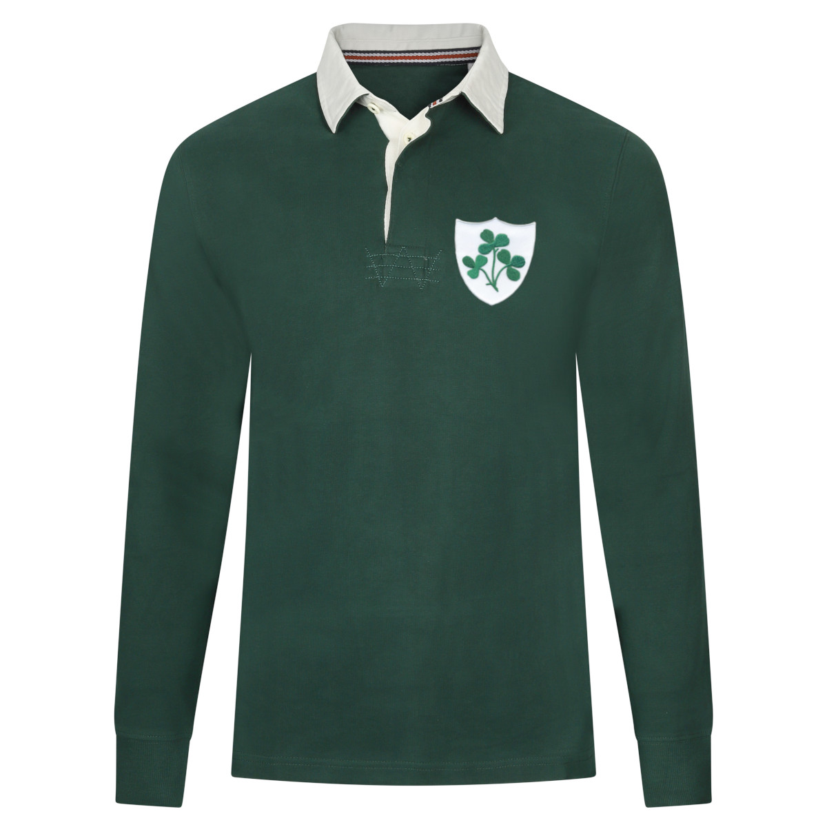 This is the Rugby Vintage brand Ireland retro rugby shirt for men. This Ireland retro rugby shirt is inspired by the shirts worn by the Irish rugby team during the 1980s. This retro shirt is all green and includes a classic white polo collar. A vintage Irish Rugby Union badge is placed on the left chest. Furthermore, this retro rugby shirt is equipped with side slits at the bottom. This Ireland retro rugby shirt has a regular fit and is made of 100% cotton. Perfect for the true Ireland rugby team fan. Material: 100% cotton.