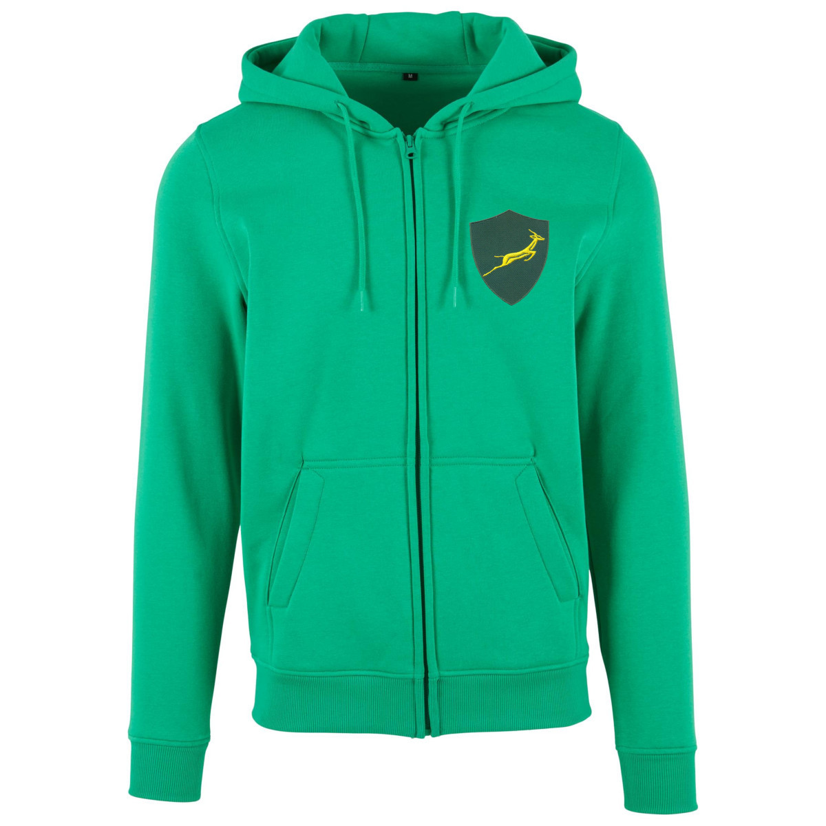 South Africa hooded vest with zip from the Rugby Vintage brand for men. The heavy rugby hoodie from South Africa is completely in green and is based on the jacket from the 70s. On the left chest a badge with the Springbok in yellow. The hood has a string to adjust it. Furthermore, this zip hoodie has two pockets. The Rugby Vintage retro rugby heavy zip hoodie has a normal fit. Material: 65% cotton - 35% polyester.