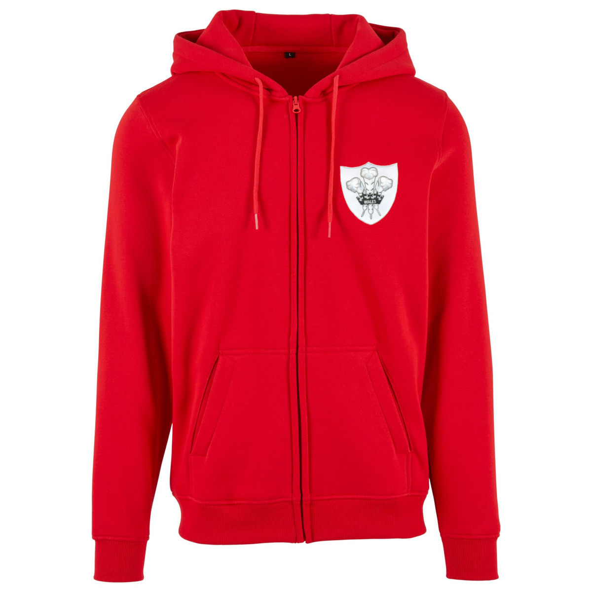 Wales rugby hooded vest with zip from the brand Rugby Vintage for men. The heavy rugby hoodie from Wales is completely in red and is based on the jacket from the 70s. On the left chest a vintage badge with ostrich feathers from Wales. The hood has a string to adjust it. Furthermore, this zip hoodie has two pockets. The Rugby Vintage retro rugby heavy zip hoodie has a normal fit. Material: 65% cotton - 35% polyester.