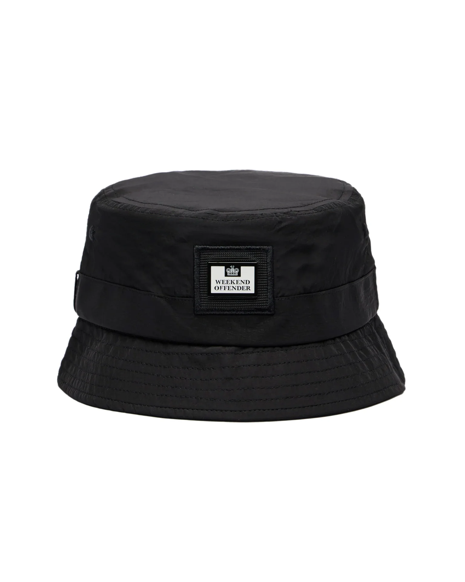 The Long Beach Blvd bucket hat from Weekend Offender is made from lightweight, high-density woven 100% nylon parachute-style fabric with a lightly reflective surface. Finished with an additional DWR (Durable Water Repellent) coating.