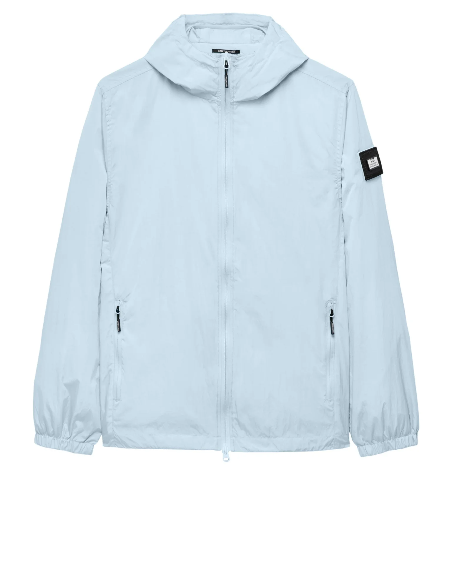 The Weekend Offender Basic Windbreaker is made from lightweight woven 100% nylon parachute-style fabric with a slightly reflective surface. Treated with an extra water-repellent coating. The Weekend Offender Technician jacket features zipped pockets, and a removable metal logo badge on the arm. And a concealed facemask in the collar.